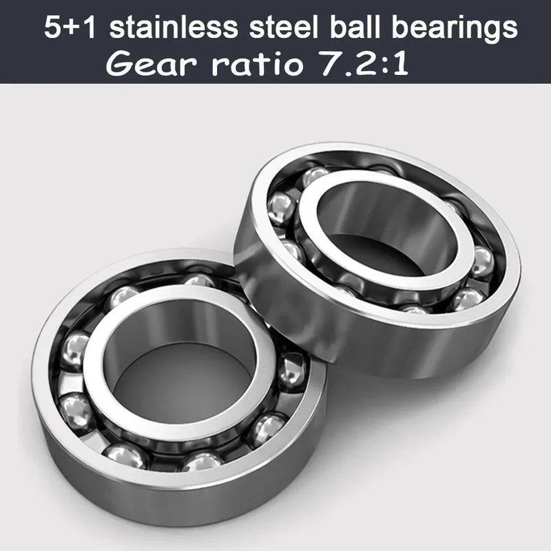 5 + 1 stainless steel ball bearings, gear ratio: 7.2:1.